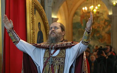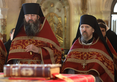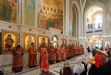 За богослужением пелихор Сретенского монастыря под руководством Никона Жилы и хор Сретенской духовной академии под руководством Марка Качанкина.