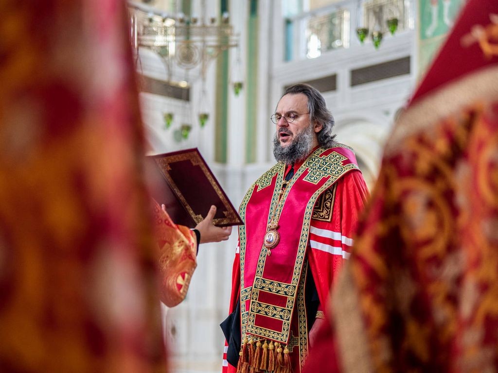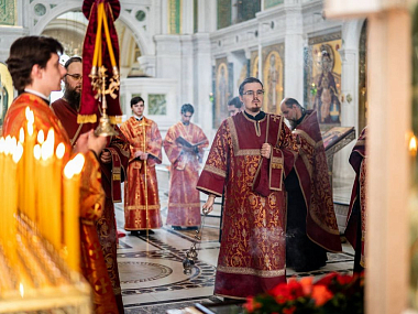 Вечером наместник монастыря архиепископ Верейский Амвросий вместе с насельниками обители совершил малую вечерню с акафистом священномученику Илариону, покровителю Сретенского монастыря.