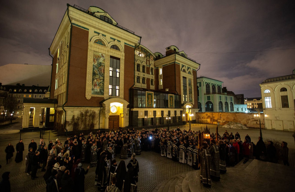 По завершении молебна архиепископ Амвросий возглавил крестный ход по территории Сретенского монастыря.