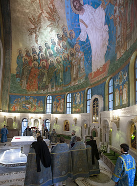 По прибытии в монастырский храм Воскресения Христова и Новомучеников и исповедников Церкви Русской глава Псковской митрополии поклонился честным мощам священномученика Илариона (Троицкого), архиепископа Верейского.