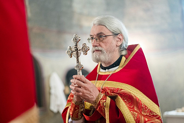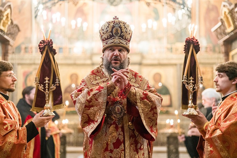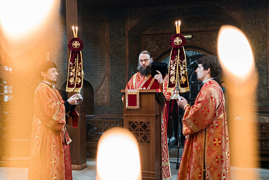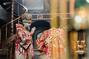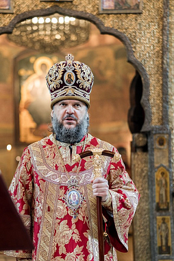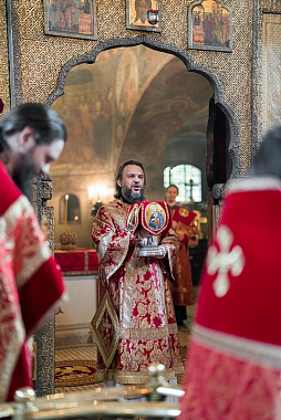 В завершение богослужения архиепископ Амвросий поздравил Святейшего Патриарха Московского и всея Руси Кирилла с днем тезоименитства: