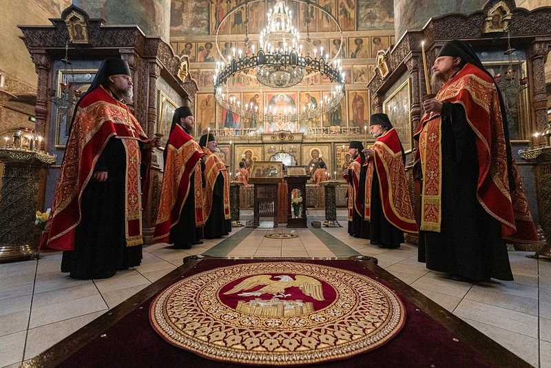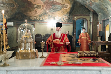 За Литургией Его Высокопреосвященству сослужили насельники обители: иеромонахи Марк (Святогоров), Никон (Париманчук), Иннокентий (Присадков), Афанасий (Дерюгин), Андроник (Пантак) и Филарет (Трунин), иеродиаконы Серафим (Чернышук), Агафангел (Давлатов) и Савва (Салюк).