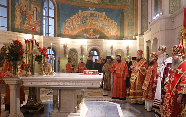 После отпуста и молитвы перед мощами священномученика Илариона митрополит Феогност поздравил братию и прихожан с днем памяти небесного покровителя обители и передал благословение Святейшего Патриарха Московского и всея Руси Кирилла.