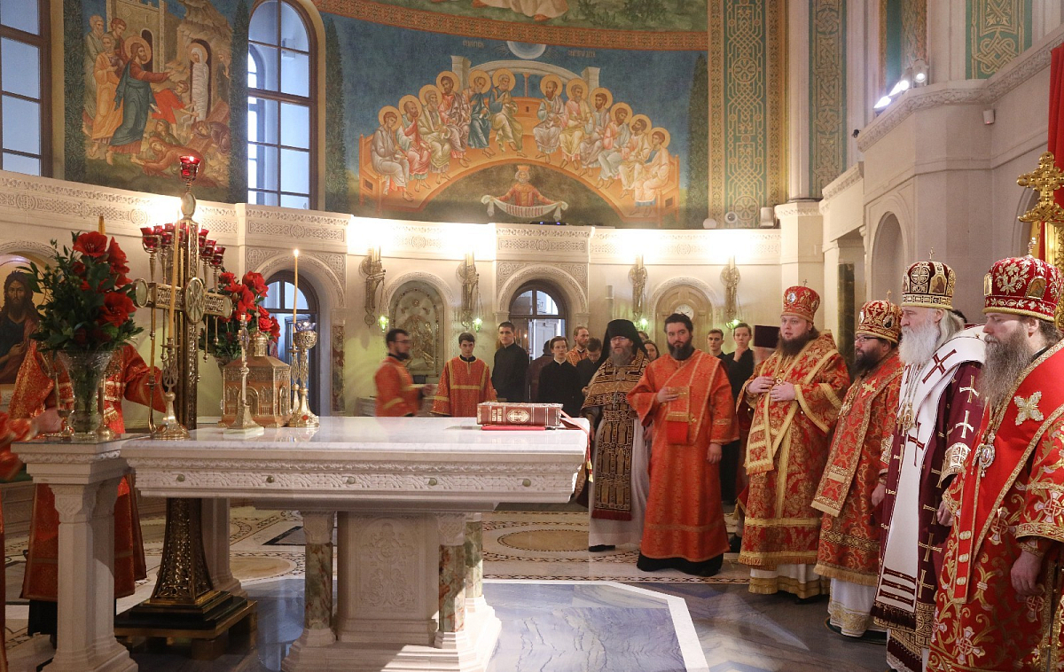 За Божественной литургией Его Высокопреосвященству сослужили: архиепископ Егорьевский Матфей (Копылов), епископ Павлово-Посадский Силуан (Вьюров), епископ Петергофский Силуан (Никитин), епископ Енисейский и Лесосибирский Игнатий (Пунин), игумен Иоанн (Лудищев), братия и гости обители в священном сане.