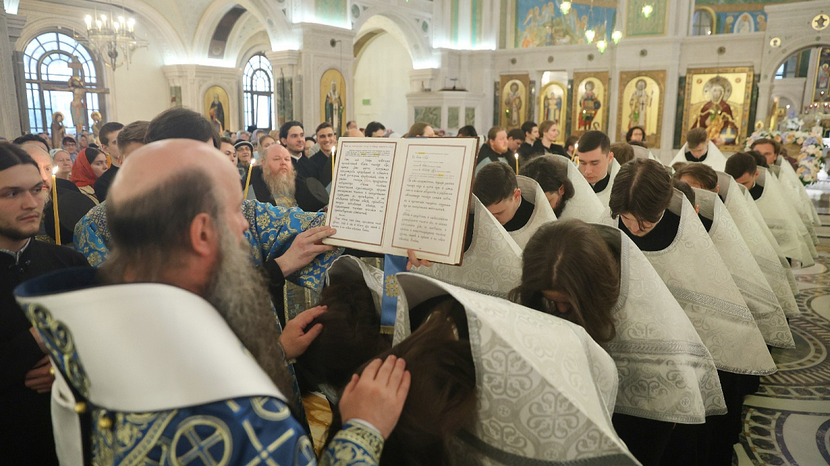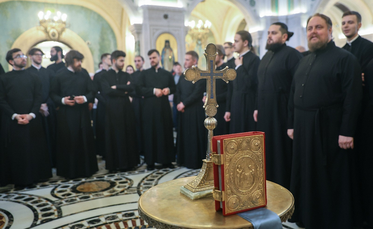 В Сретенском монастыре к престольному празднику 3 июня приурочено еще одно важное событие – выпускной в Сретенской духовной академии. На всенощном бдении над семинаристами, окончившими обучение, совершается чин хиротесии. Каждый выпускник, облаченный в специальную короткую фелонь, зачитывает выпавший по жребию отрывок из Апостола. Хиротесию во чтецов совершил епископ Звенигородский Кирилл (Зинковский), ректор Московской духовной академии.