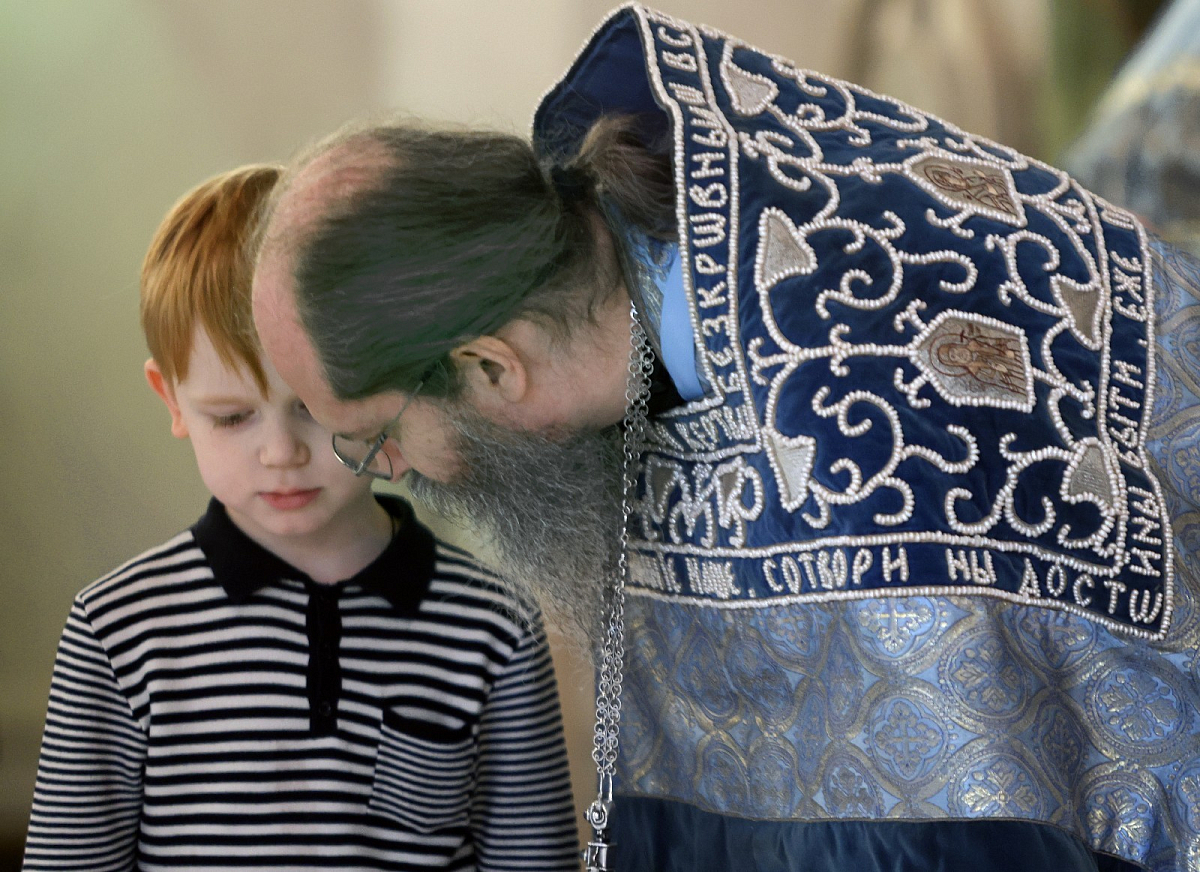 По окончании Литургии ребятам торжественно вручили дипломы, наместник монастыря игумен Иоанн (Лудищев) сказал напутственное слово: