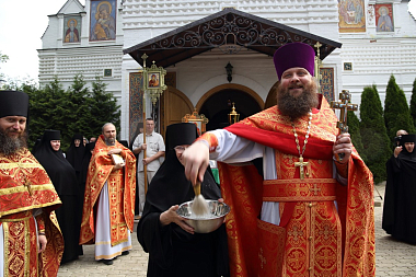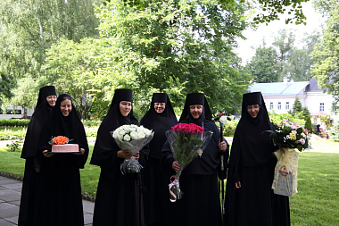 Торжества завершила праздничная трапеза, за которой прозвучало множество поздравлений в адрес игумении Елисаветы от гостей, прихожан и насельниц обители. Сестры монастыря, паломники и детско-юношеский хор при Успенском храме г. Сергиева Посада подготовили для именинницы и гостей музыкальное поздравление.