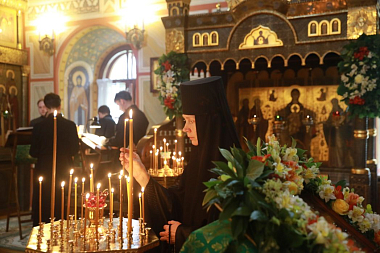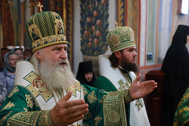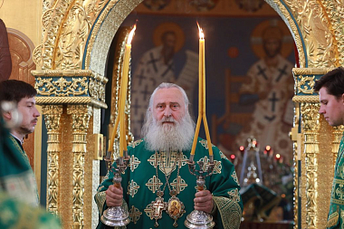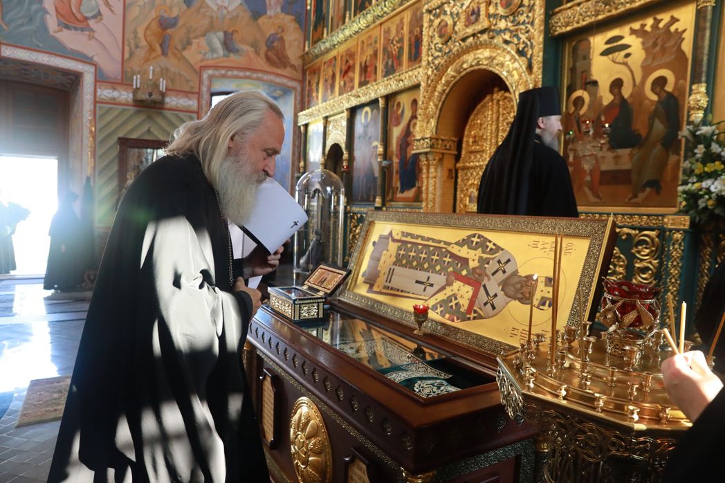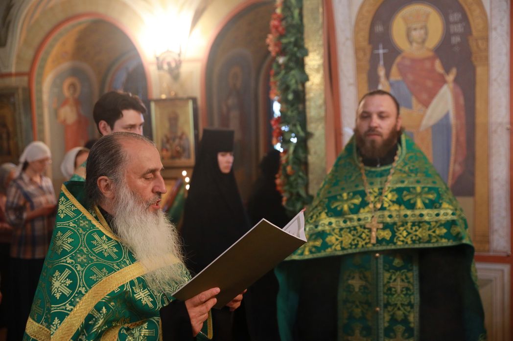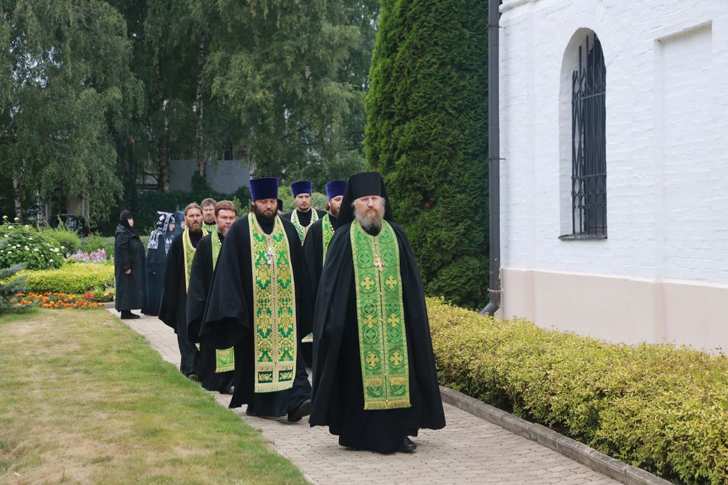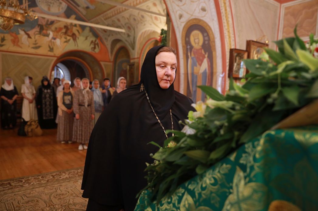 Позднюю Божественную литургию в Троицком храме монастыря возглавили председатель Синодального отдела по монастырям и монашеству, наместник Донского ставропигиального мужского монастыря митрополит Каширский Феогност и наместник Свято-Троицкой Сергиевой лавры епископ Сергиево-Посадский и Дмитровский Фома.