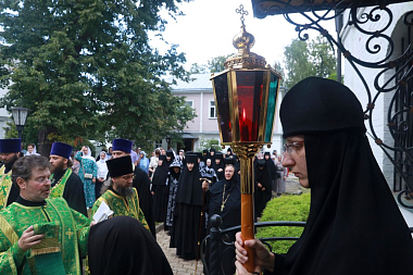 Завершил позднюю Литургию крестный ход, направившийся из Троицкого собора в храм преподобного Стефана Махрищского, где был совершен торжественный молебен у святых мощей преподобного.