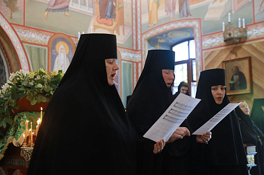 Богослужебные песнопения исполнил сестринский монастырский хор и мужской хор храма Живоначальной Троицы в Останкине г. Москвы.