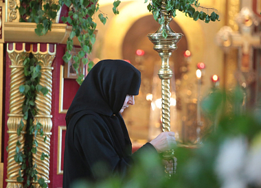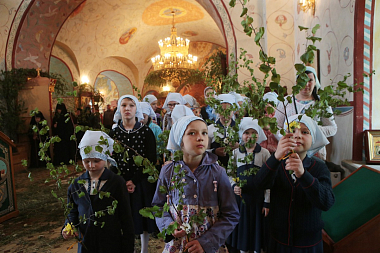 По окончании Великой вечерни с коленопреклоненными молитвами был совершен крестный ход, после которого все прихожане были приглашены на праздничную трапезу под березами. Там же состоялся концерт, подготовленный воспитанницами Александровской гимназии и сестрами обители.