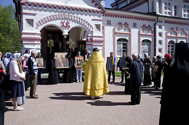 Накануне, 21 мая, в Акатовской обители было отслужено всенощное бдение с акафистом святителю Николаю.