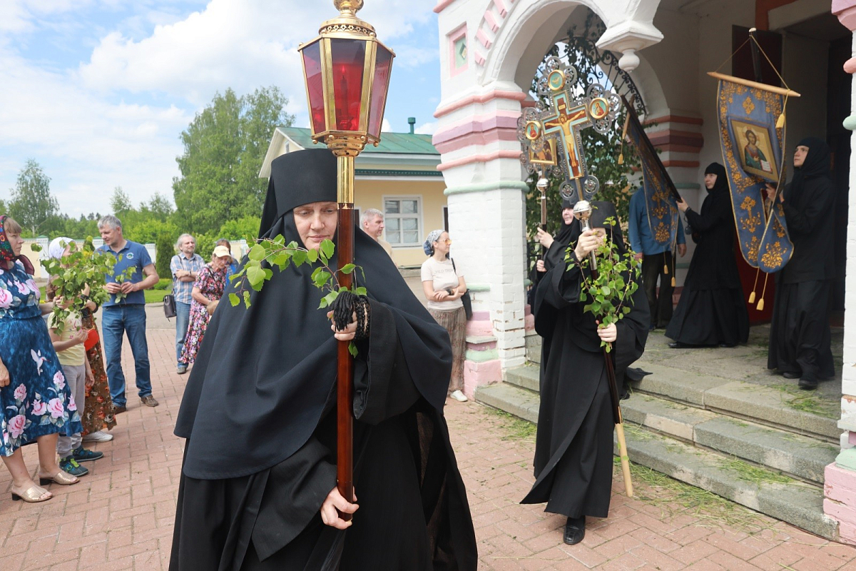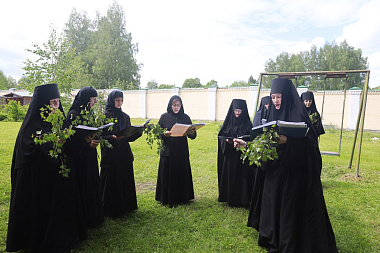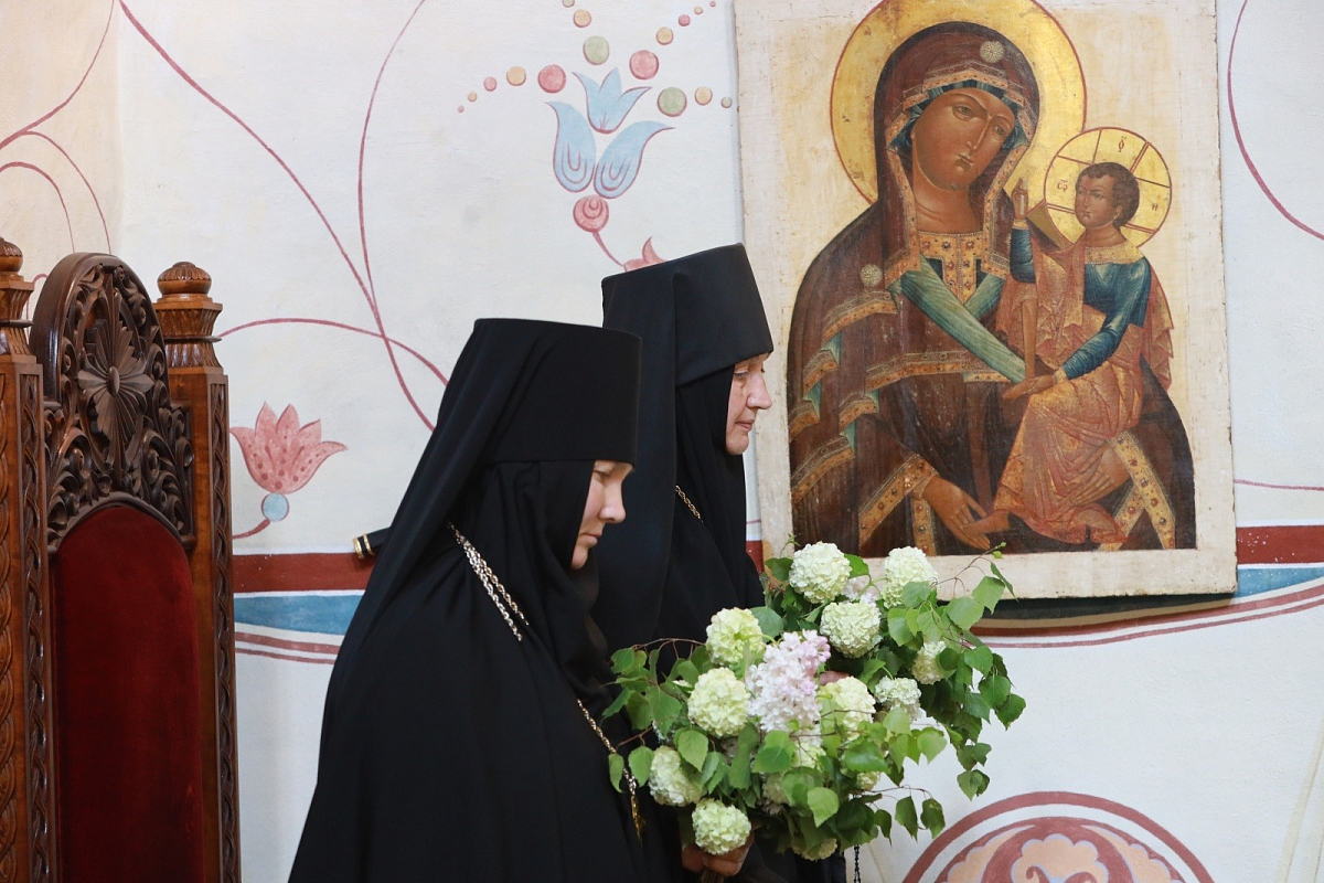 За богослужением молились настоятельница Свято-Троицкой Александро-Невской обители игумения Антония (Минина) с насельницами обители, настоятельница Никольского Шостьенского ставропигиального женского монастыря игумения Неонилла (Фролова) с сестрами.
