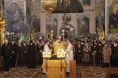 По запричастном стихе Его Высокопреосвященство поздравил настоятельницу монастыря игумению Рафаилу (Хильчук) с сестрами, всех прихожан и гостей со светлым праздником Рождества Христова и пожелал быть крепкими и стойкими в вере в эти нелегкие дни для православных верующих Украинской Православной Церкви.