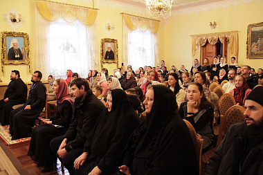 Затем для гостей и всех желающих в актовом зале Регентско-катехизаторского духовного училища при обители воспитанницами училища и учащимися монастырской воскресной школы был представлен концерт «Рождественская елка».