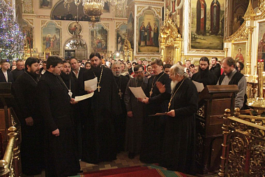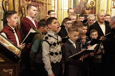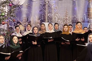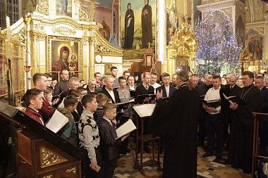В завершение колядок сводным хором были исполнены тропарь и кондак праздника, а также «С нами Бог» Зиновьева.