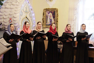 Участники всех хоров были приглашены на праздничный ужин, после которого игумения Рафаила поблагодарила всех певчих за исполнение колядок и вручила подарки.