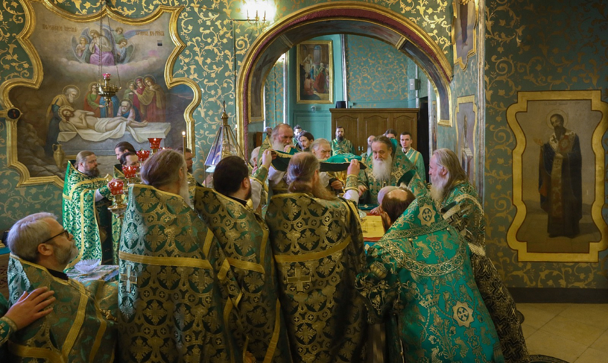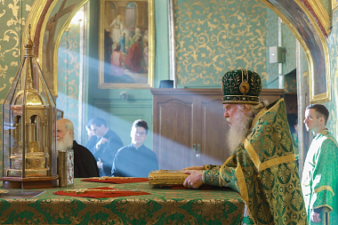 Божественную литургию в Трапезном храме совершил председатель Синодального отдела по монастырям и монашеству митрополит Каширский Феогност. Его Высокопреосвященству сослужили епископ Видновский Тихон, епископ Мытищинский Феофилакт, епископ Серпуховской Роман, епископ Наро-Фоминский Парамон.