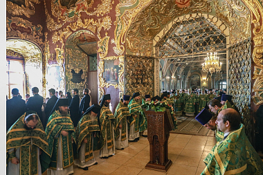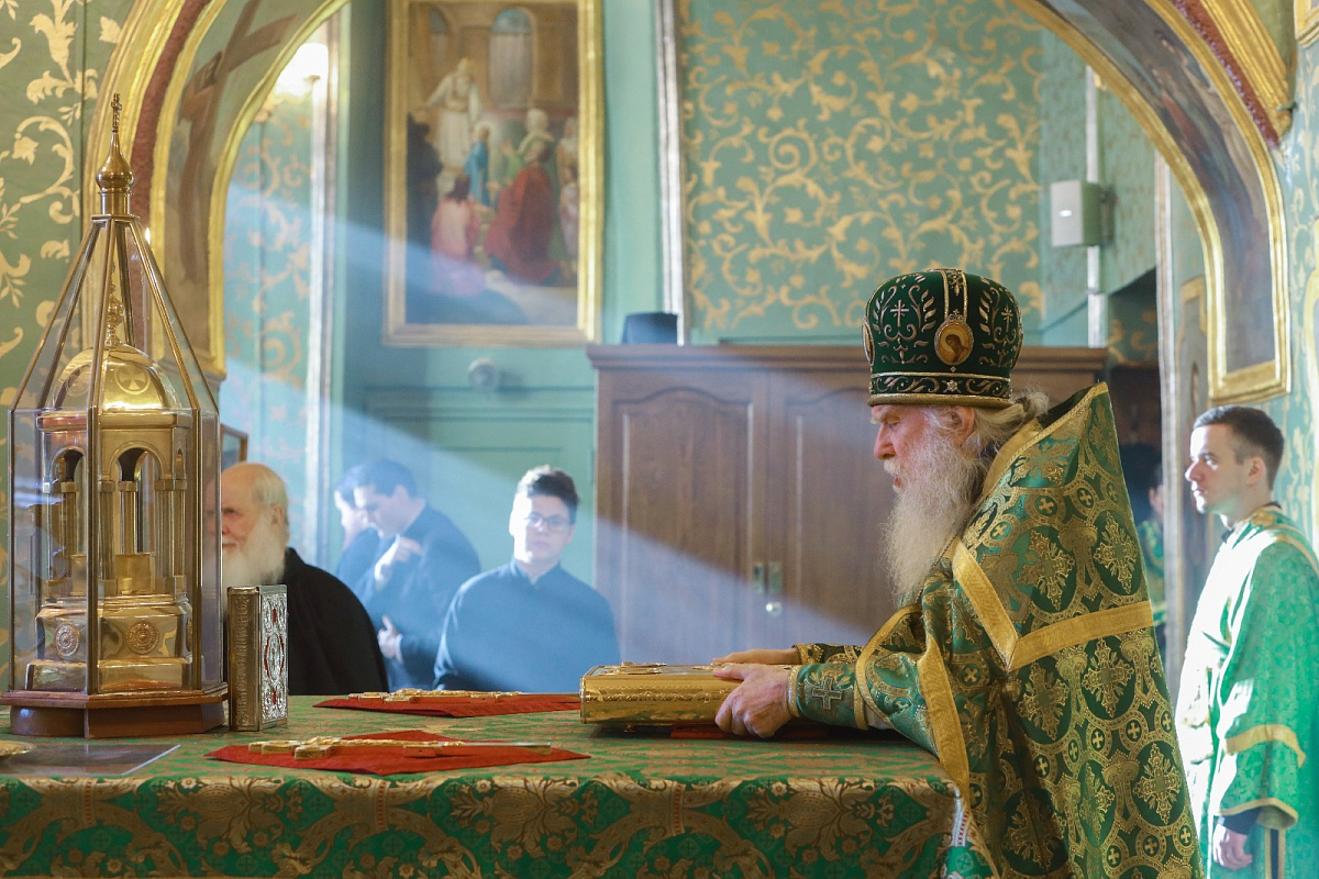 В Успенском соборе Лавры Божественную литургию совершил Патриарший наместник Московской митрополии митрополит Крутицкий и Коломенский Павел. Его Высокопреосвященству сослужили митрополит Курганский и Белозерский Даниил, епископ Одинцовский и Красногорский Фома, глава Сербского Патриаршего подворья в Москве епископ Антоний, епископ Истринский Серафим.
