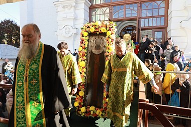8 октября, в сам день праздника, Божественную литургию в Троицком соборе совершил управляющий делами Московской Патриархии митрополит Воскресенский Дионисий. Его Высокопреосвященству сослужили епископ Зеленоградский Савва, наместник Троице-Сергиевой лавры епископ Сергиево-Посадский и Дмитровский Фома.