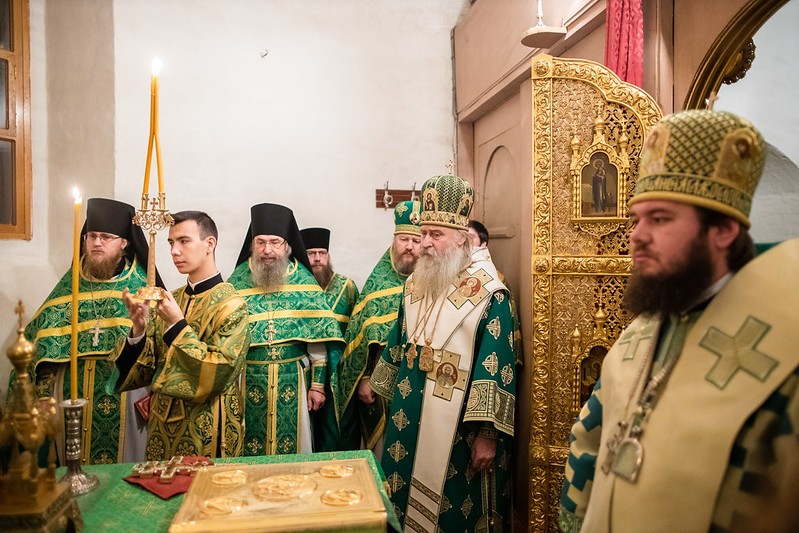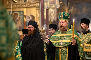 Накануне в Успенском соборе Лавры всенощное бдение возглавил наместник Саввино-Сторожевского ставропигиального мужского монастыря архимандрит Павел (Кривоногов).