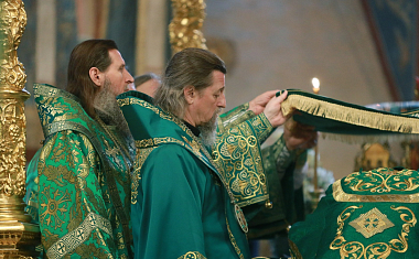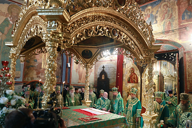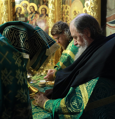 7 октября в Троицком соборе Лавры всенощное бдение в сослужении архиереев Русской Православной Церкви совершил управляющий делами Московской Патриархии, наместник Новоспасского ставропигиального монастыря митрополит Воскресенский Дионисий.