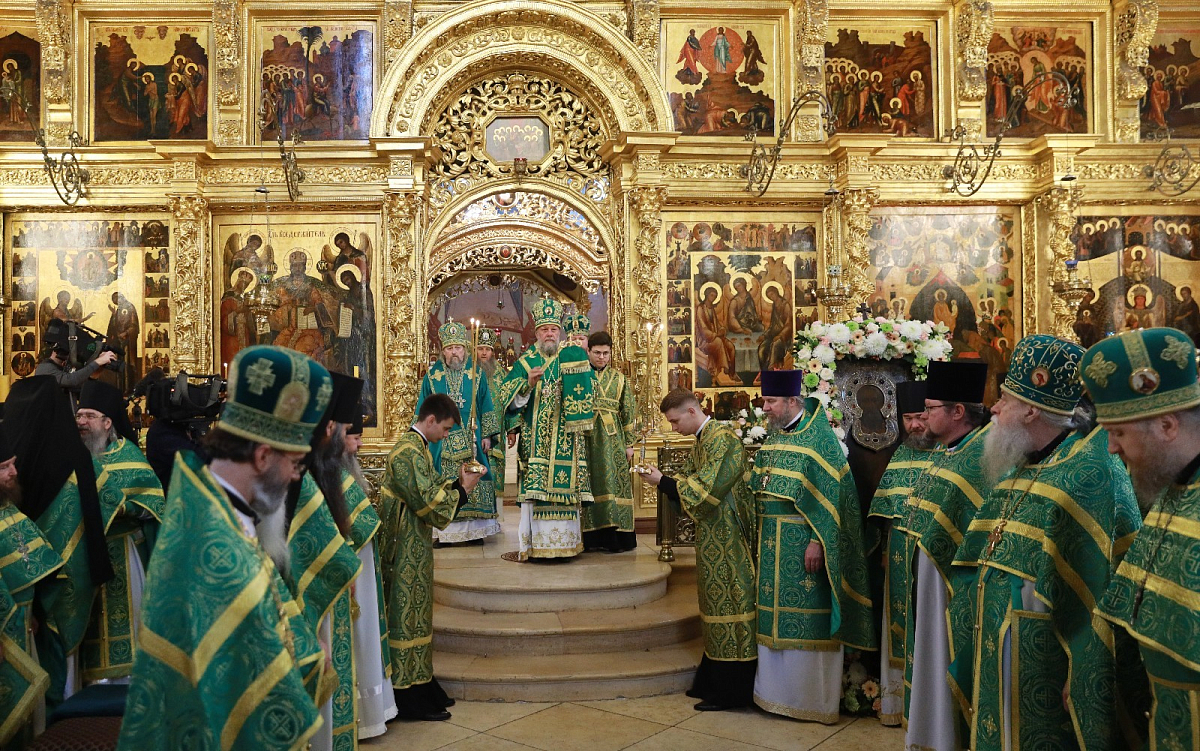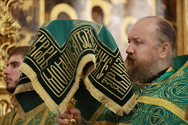 В Трапезном храме Троице-Сергиевой лавры праздничное всенощное бдение возглавил митрополит Крутицкий и Коломенский Павел.