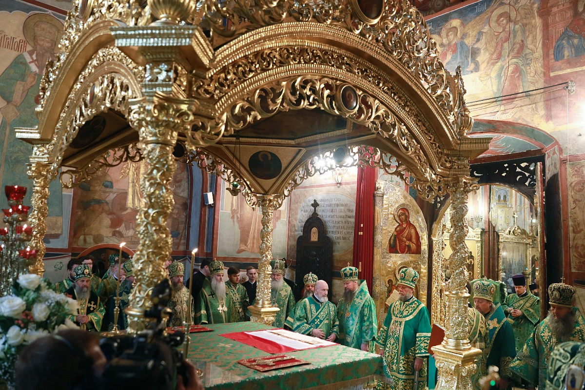 После праздничных богослужений управляющий делами Московской Патриархии митрополит Воскресенский Дионисий зачитал поздравительное послание Святейшего Патриарха Кирилла наместнику, насельникам и паломникам обители.