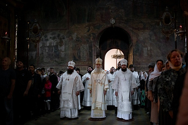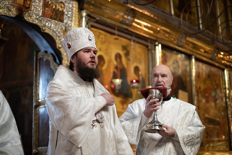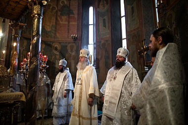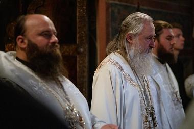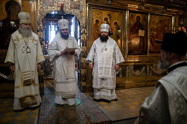 26 августа 2020 года, в день памяти великого русского святителя Тихона Воронежского, председатель Синодального отдела по монастырям и монашеству архиепископ Каширский Феогност, наместник Троице-Сергиевой лавры епископ Сергиево-Посадский Фома и епископ Наро-Фоминский Парамон совершили Божественную литургию в Троицком соборе Троице-Сергиевой лавры.