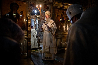 За Божественной литургией было прочитано святительское зачало из Евангелия от Матфея (Мф. 5:14–19), в котором Спаситель призывает Своих учеников к нравственному совершенству, видя которое окружающие будут прославлять Небесного Отца.