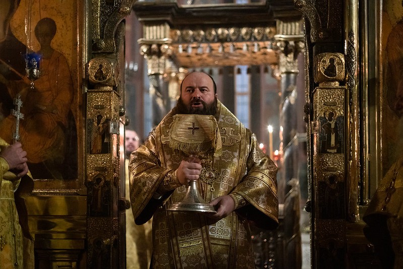 Воскресную Божественную литургию в Троицком соборе Лавры совершили председатель Синодального отдела по монастырям и монашеству архиепископ Каширский Феогност и наместник Свято-Троицкой Сергиевой лавры епископ Сергиево-Посадский Парамон.