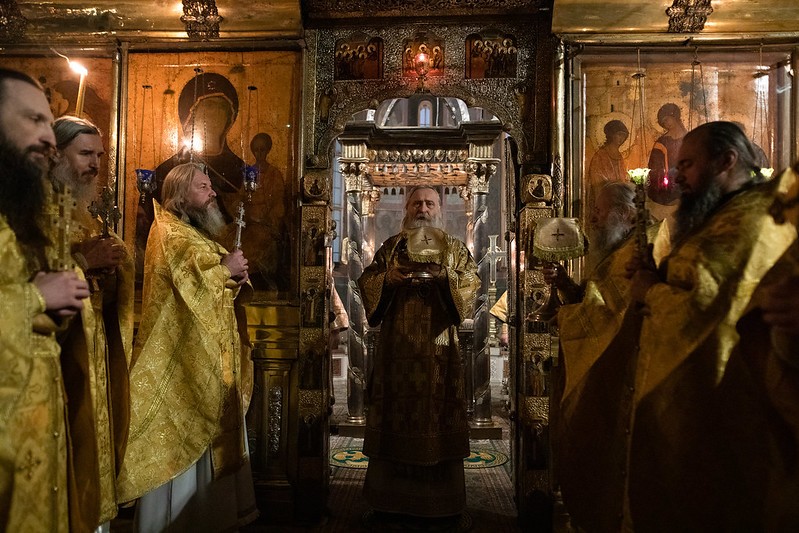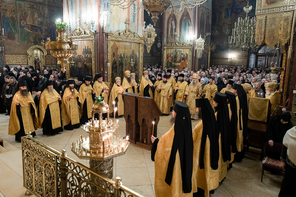 Церковные песнопения исполнил знаменный хор Лавры под управлением иеромонаха Зиновия (Бубякина).