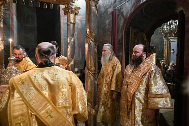 Накануне всенощное бдение в Успенском соборе Лавры в сослужении братии обители в священном сане возглавил митрополит Тернопольский и Кременецкий Сергий.