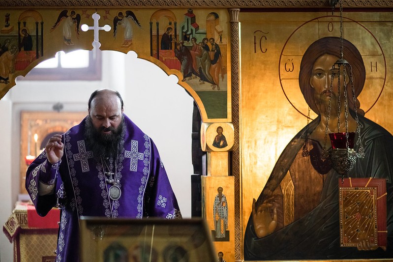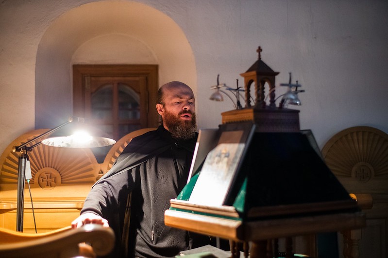 Накануне вечером в Успенском соборе обители братия Лавры во главе с архимандритом Иеремией (Соловьевым) отслужила повечерие с утреней.