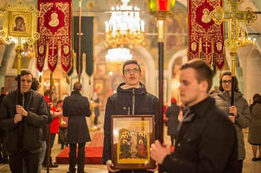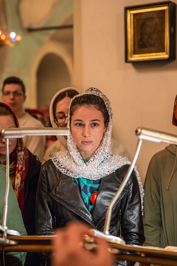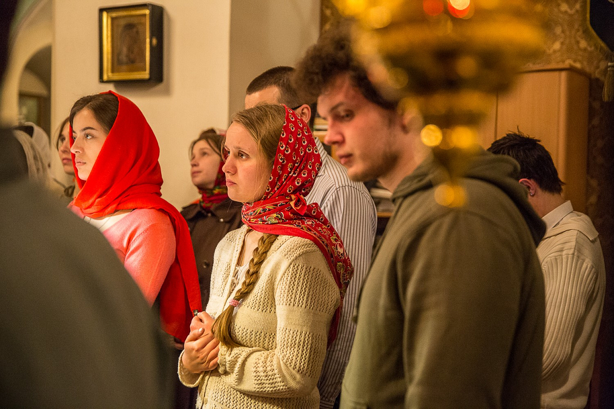 В храме молились участники молодежных объединений. К Таинству Причастия приступило большинство молящихся в эту ночь в храме.