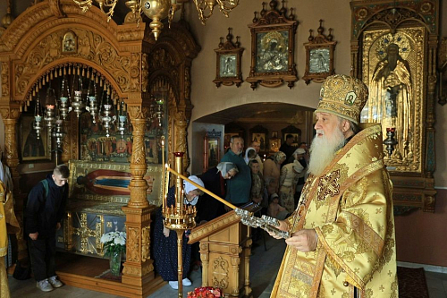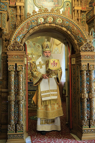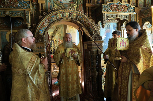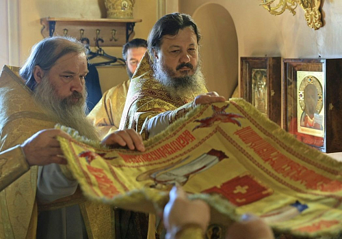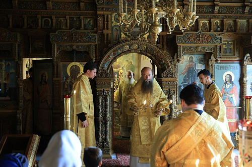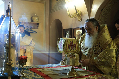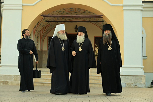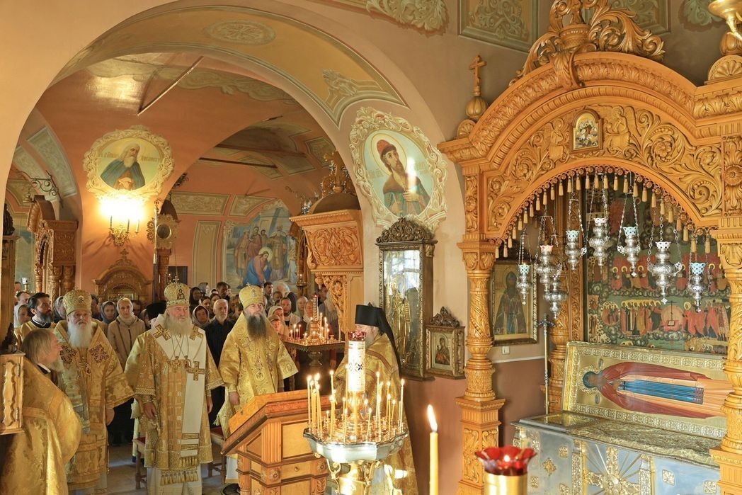 Его Высокопреосвященству сослужили наместник Высоцкого монастыря епископ Серпуховской Роман, наместник Николо-Угрешского ставропигиального монастыря епископ Егорьевский Мефодий, наместник Николо-Пешношского монастыря игумен Алексий (Горлычев), братия обители в священном сане.