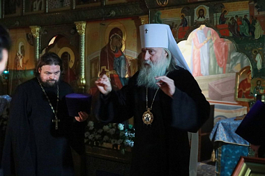 Его Высокопреосвященству сослужили клирики Зачатьевской обители.