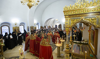 Завершился престольный праздник чином о панагии и трапезой с поздравлениями в адрес заместителя председателя Синодального отдела по монастырям и монашеству игумении Иулиании, молитвенно отметившей 3 января малый день Ангела.