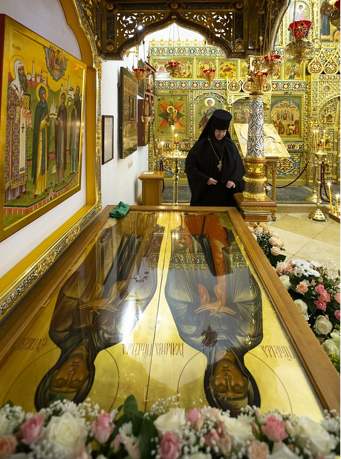 Придел собора в обычные дни закрыт для прихожан: там молятся недугующие монахини и те из насельниц, кто по благословению игумении хотел бы особо сосредоточенно помолиться, не отвлекаясь на многолюдное собрание паломников обители.