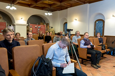 Встреча проходила в рамках постоянно действующей при Зачатьевском монастыре медиастудии, которая объединяет начинающих и профессиональных фотографов и видеографов, стремящихся улучшить свое профессиональное мастерство.