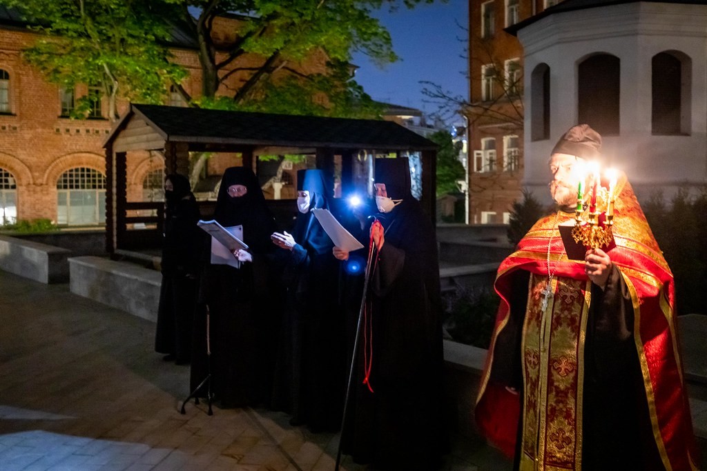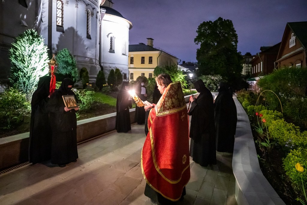 В ночь с 15 на 16 мая в Зачатьевской обители прошли праздничные богослужения: всенощное бдение и Божественная литургия, – которые также транслировались в прямом эфире.