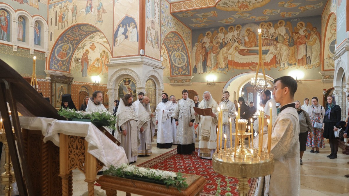 В приделе святителя Алексия монастырского собора в честь Рождества Пресвятой Богородицы Его Высокопреосвященству сослужили клирики обители.