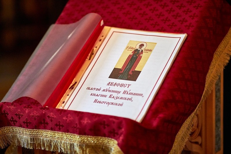 После крестного хода вокруг монастырского собора богослужение продолжилось пением нараспев акафиста святой благоверной княгине мученице Иулиании Вяземской. Сестры торжественно пели: «Радуйся, Иулиание, благоверная княгиня целомудренная».