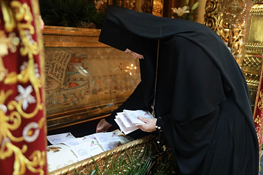 По окончании молебна насельницы обители с благоговением получили конверты с послушаниями, словно «из рук святительских», молитвенно обращаясь к митрополиту Алексию и его сестрам, преподобным Иулиании и Евпраксии за благодатной помощью в усердном исполнении порученных им монастырских дел.