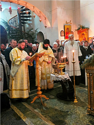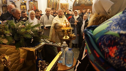 Клирики монастыря совершили уставные службы Крещенского сочельника, всенощное бдение и ночную Божественную литургию праздника, чин Великого освящения воды.