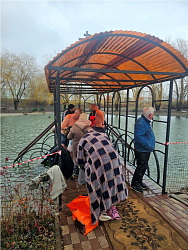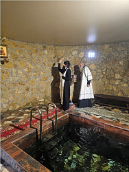 На подворье после Литургии и чина Великого освящения воды иерей Владимир Зыков освятил купель источника «Тихвинской» иконы Божией Матери, а также монастырские пруды, в которых тоже проходило погружение.