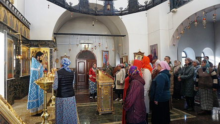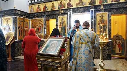 Много людей причастились Святых Христовых Таин, священники в проповедях рассказали собравшимся прихожанам и паломникам об истории праздника, прочли молитву перед иконой, помещенной на центральном аналое.