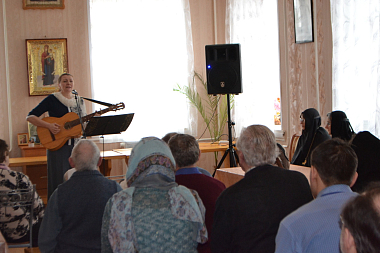 Исполняя песни своего давнего друга иеромонаха Романа (Матюшина), Ирина Скорик отметила, что важно видеть боль других, принимать ее как свою, и тогда Господь восполнит дефицит чистоты наших душ.