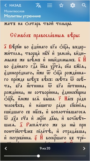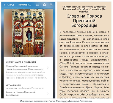 В приложение было добавлено запоминание последнего места чтения: теперь, читая, к примеру, длинный канон, расширенное житие святого или книгу, можно прерваться и продолжить позже с того же места.
