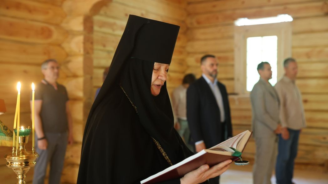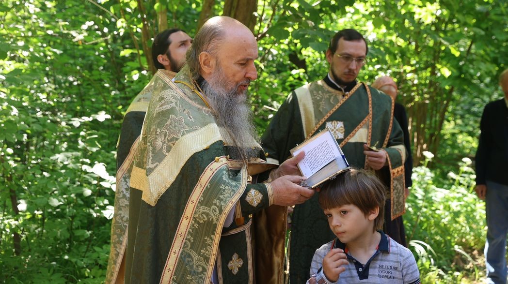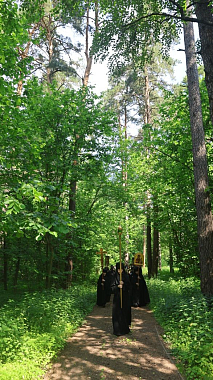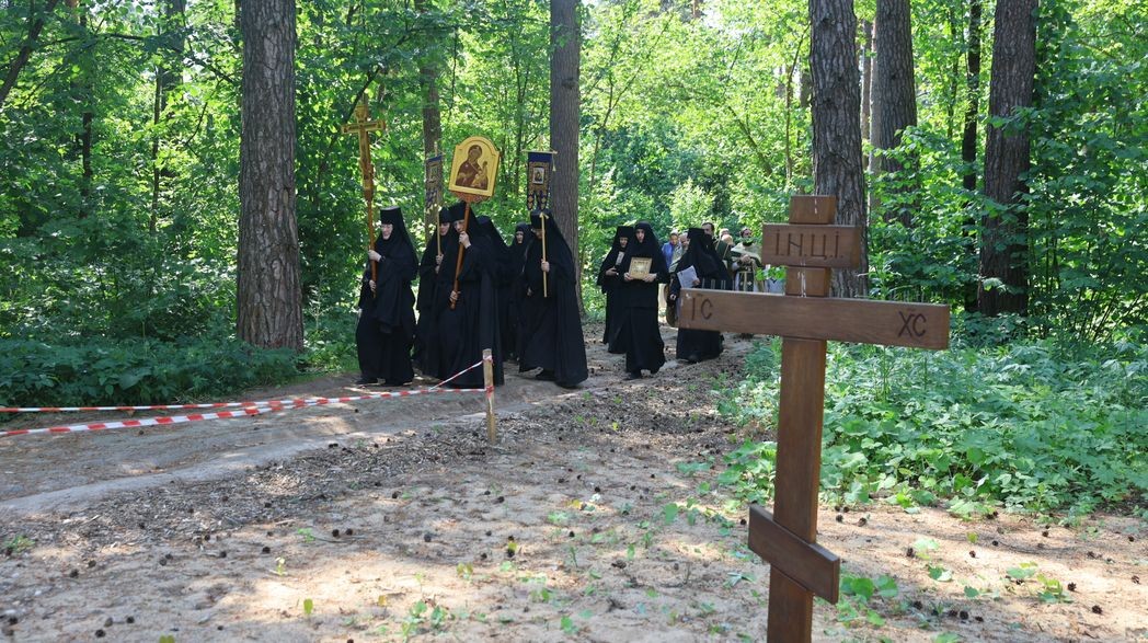 По окончании Литургии был совершен крестный ход по всему участку, с пением заупокойной литии на месте расположения землянки, где укрывались в 30-е годы XX века насельницы закрытого монастыря.